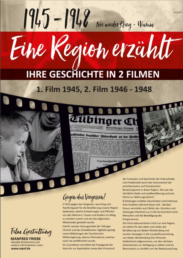 Regie: Manfred Friebe, Ammerbuch-Poltringen Erstaufführung: im Rahmen der Herrenberger Veranstaltungsreihe „Gesichter des Krieges – Gesichter des Friedens„ Trailer: https://mpvf2.wistia.com/medias/glmf6jsnqe Erhältlich bei: Landesfilmsammlung Baden-Württemberg, Haus des Dokumentarfilms · Europäisches Medienforum Stuttgart e.V., MFG Medien- und Filmgesellschaft Baden-Württemberg mbH und Landesfilmschau Baden-Württemberg… Weiterlesen →
